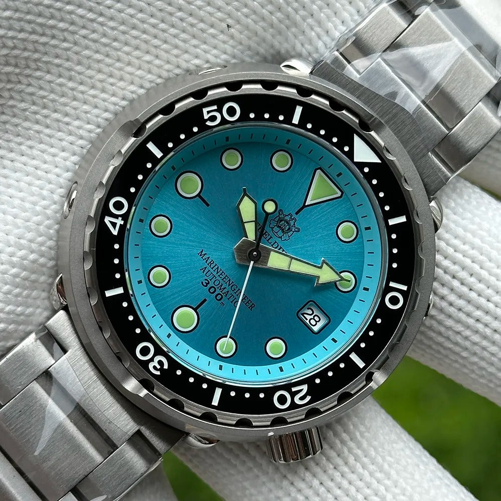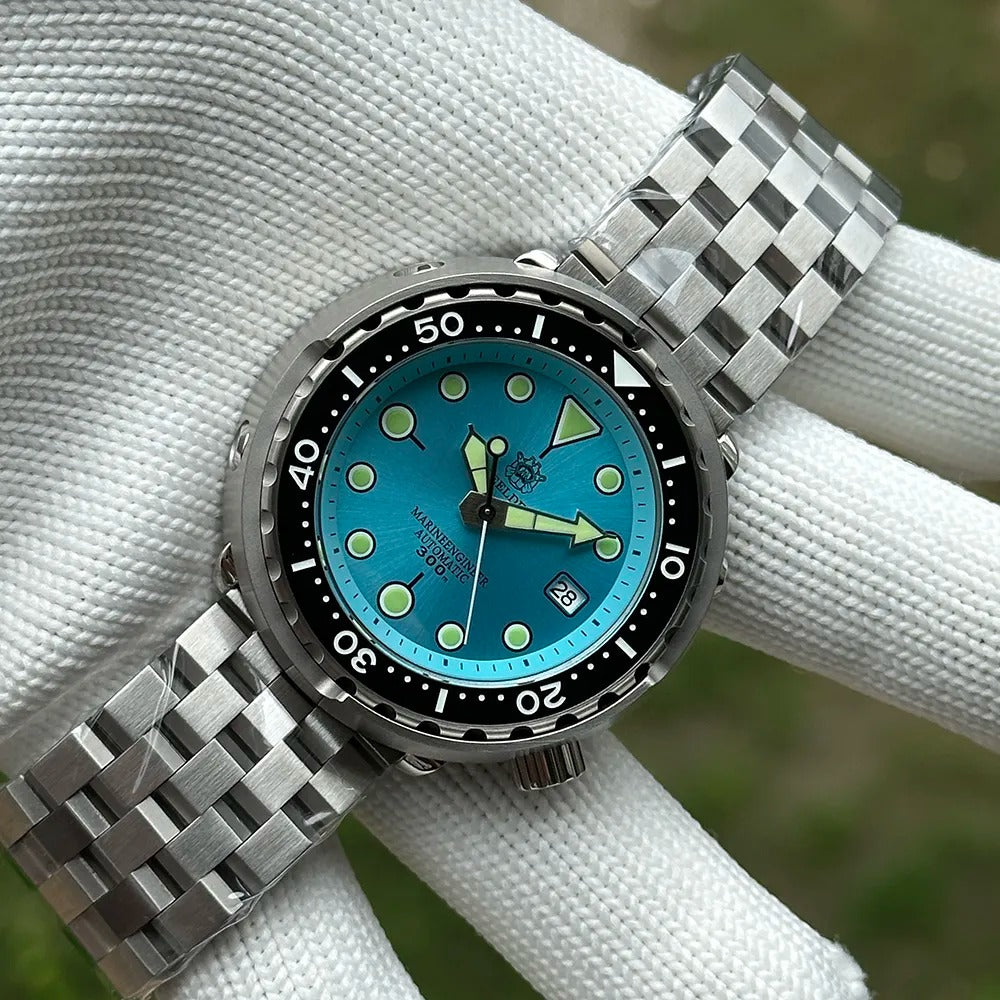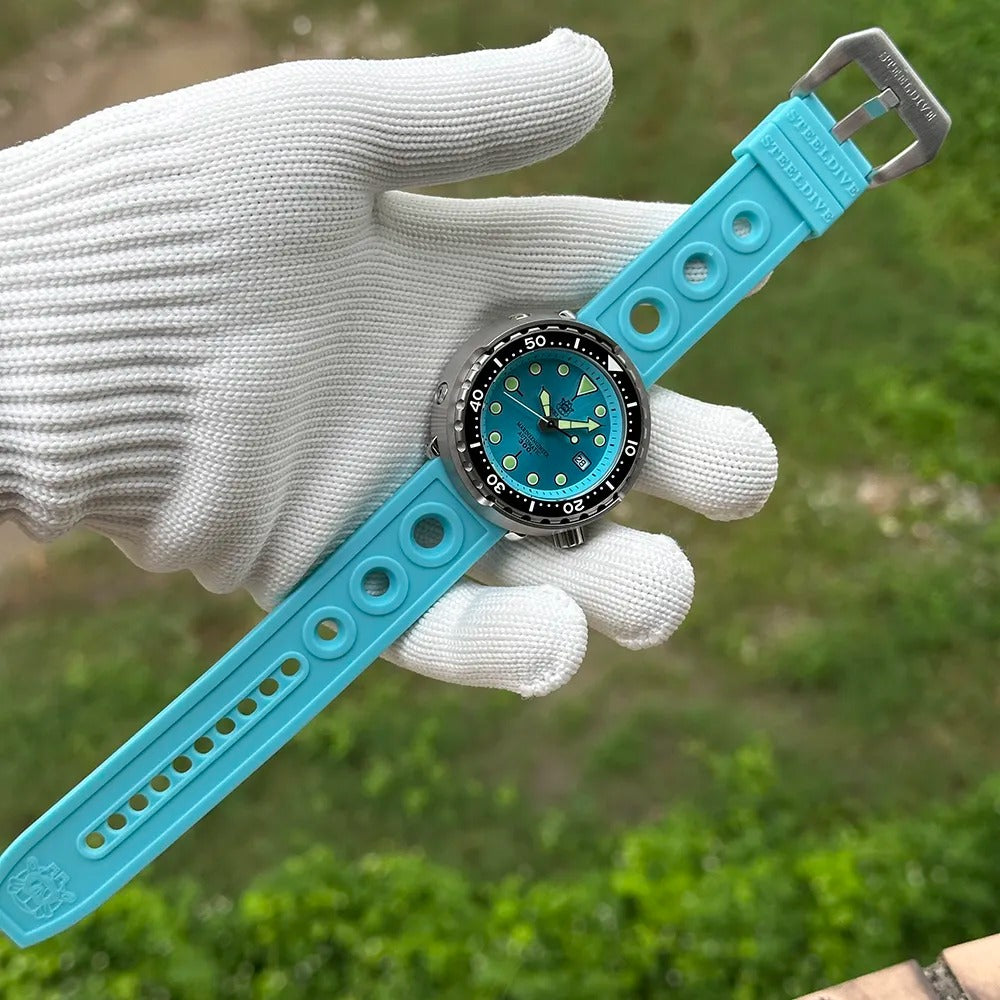 Steeldive 1975 is an homage to “perfect professional divers' watch” in 1975. One of its innovative features is the ceramic protective shroud that makes the watch extremely robust and also very distinctive. Aficionados thought it looked like the wearer had a can of tuna strapped to his wrist, hence the nickname, “Tuna”.
